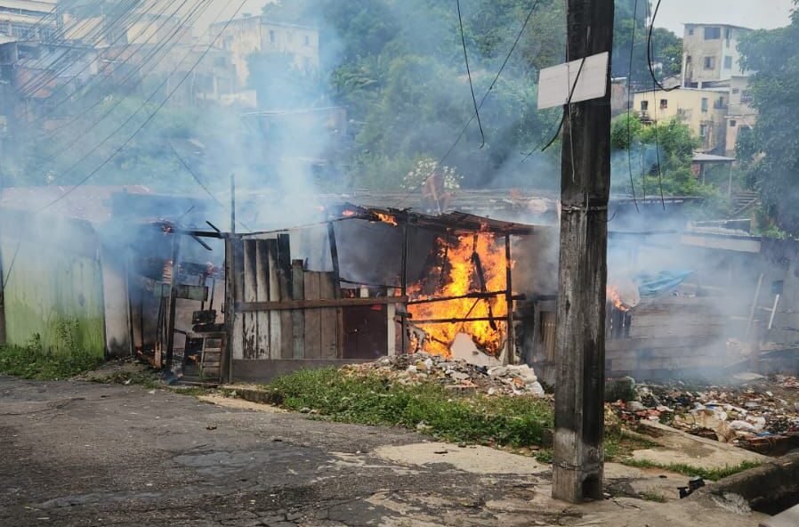 Vídeo incêndio atinge casa de madeira no bairro Praça 14, em Manaus