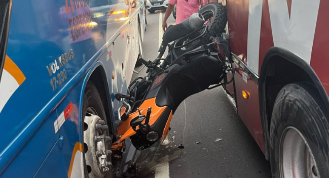 MANAUS (AM) -O motociclista Felipe Santos, de 30 anos, sobreviveu após ficar prensado entre dois ônibus na manhã desta segunda-feira, 31/3, na avenida Grande Circular, zona Leste de Manaus.