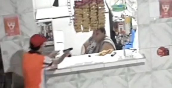 De acordo com as imagens de câmeras de segurança, a dona do estabelecimento estava no balcão quando quatro suspeitos entraram e anunciaram o assalto. Assustada, a comerciante conseguiu correr para dentro de casa. O grupo levou o celular da vítima, dinheiro do caixa e ainda recolheu algumas mercadorias.