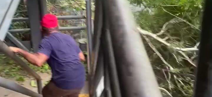 Em outro ângulo do vídeo, é possível ver a balsa colidindo com diversos galhos de árvores, enquanto passageiros corriam para se proteger.